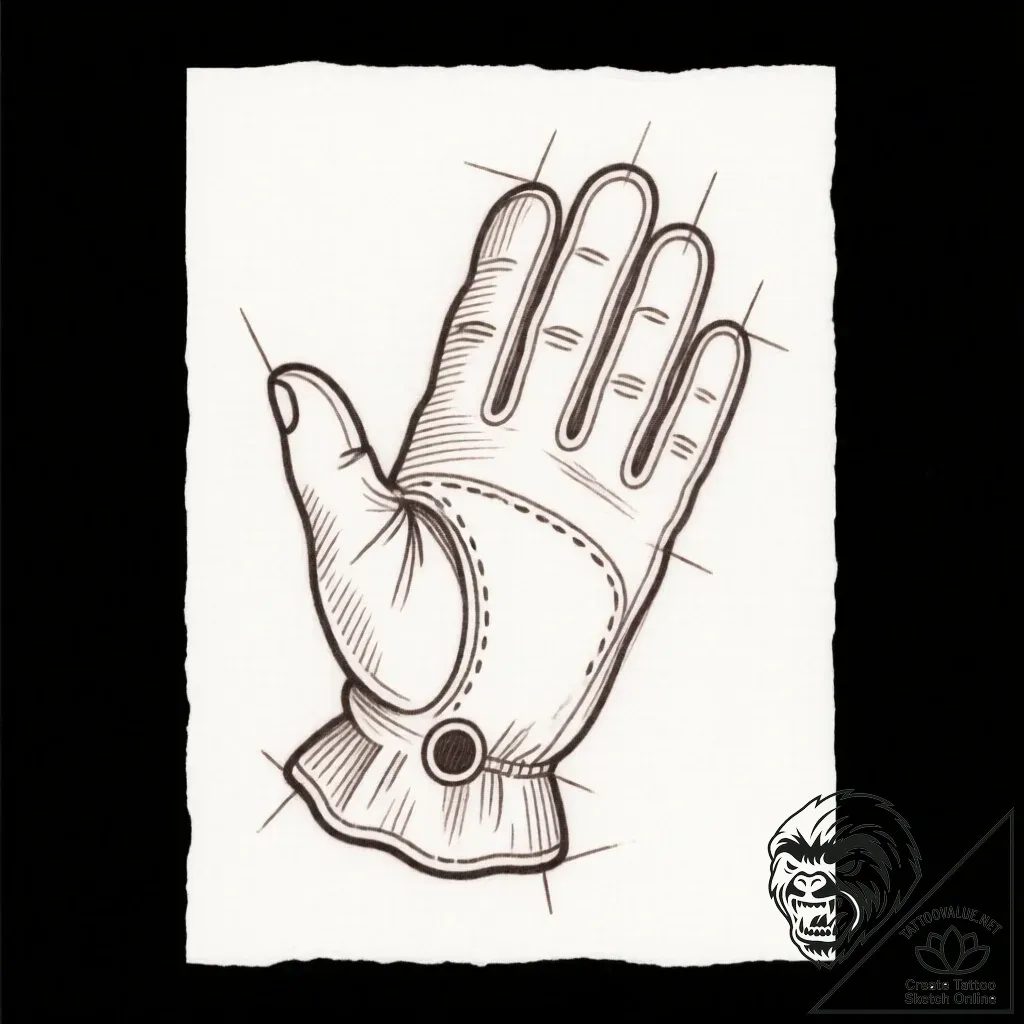 This linework tattoo sketch captures a single boxing glove in a delicate, fine-line style, reminiscent of vintage etchings. The composition, with its clean lines and subtle shading, evokes a sense of raw power waiting to be unleashed, like a coiled spring ready to strike.