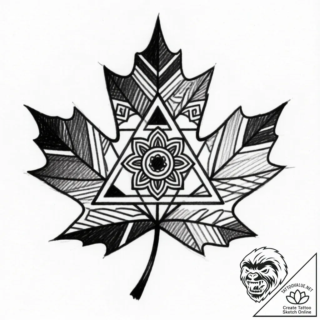 The maple leaf, often symbolizing strength, resilience, and balance, is here infused with the profound symbolism of sacred geometry, representing order, harmony, and the interconnectedness of the universe. This design can signify a deep appreciation for nature's inherent order, a quest for spiritual balance, or the embodiment of inner strength rooted in disciplined thought.