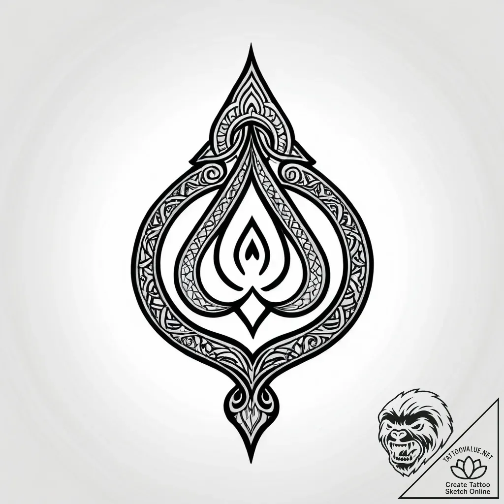 This is a striking monochrome tattoo sketch, a delicate dance of black ink on a pure white canvas. It's a masterful blend of graphic linework and ornamental filigree, evoking the feeling of an ancient sigil or a celestial teardrop. The intricate details, reminiscent of gothic tracery and flowing organic patterns, create a mesmerizing visual symphony of depth and precision, imbued with a sense of timeless elegance.