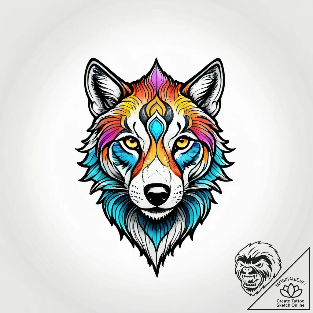 The wolf embodies primal instinct, fierce loyalty, and untamed freedom, often symbolizing leadership and the wild spirit. The explosion of color can represent a vibrant inner life, a celebration of individuality, or a journey through emotional landscapes, making this tattoo a powerful statement of resilience and self-expression.