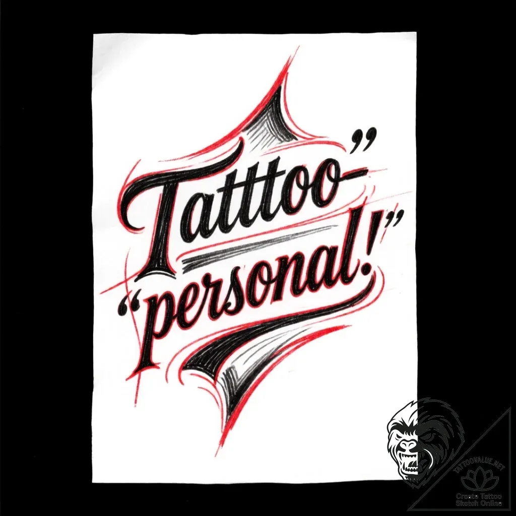 • Final Prompt for AI (EN): tattoo sketch, tattoo design, isolated tattoo sketch on pure white background, Linework tattoo illustration of empowering words and personal quotes, rendered in a rough, sketchy, hand-drawn pencil sketch style with an artistic, unfinished look. The design features clean, fine, single-needle lines and an outline tattoo aesthetic. It is presented on clean white paper, isolated. The color palette consists of dramatic two-tone black and red ink, with a prominent red accent.
