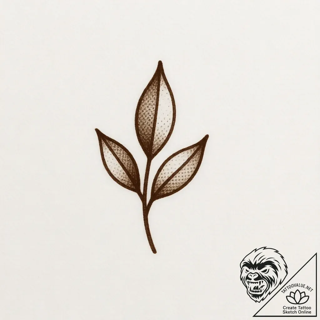 This minimalist tattoo sketch is a delicate dance of sepia ink on aged paper, where simple lines bloom into subtle form. The graphic composition, enhanced by soft whip, pepper, and dot shading, evokes the whisper of wind through leaves, creating a vintage yet timeless feel.