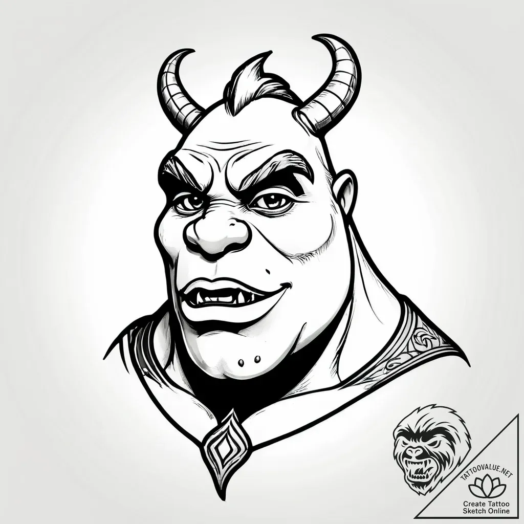 • Final Prompt for AI (EN): tattoo sketch, tattoo design, isolated tattoo sketch on pure white background, Shrek Forever After (2010) concept art, tattoo design, clean white paper, isolated, black outline only, pure linework, no shading, clean lines, crisp outlines, sharp linework, blackwork tattoo style, dark art, bold black areas, heavy black ink