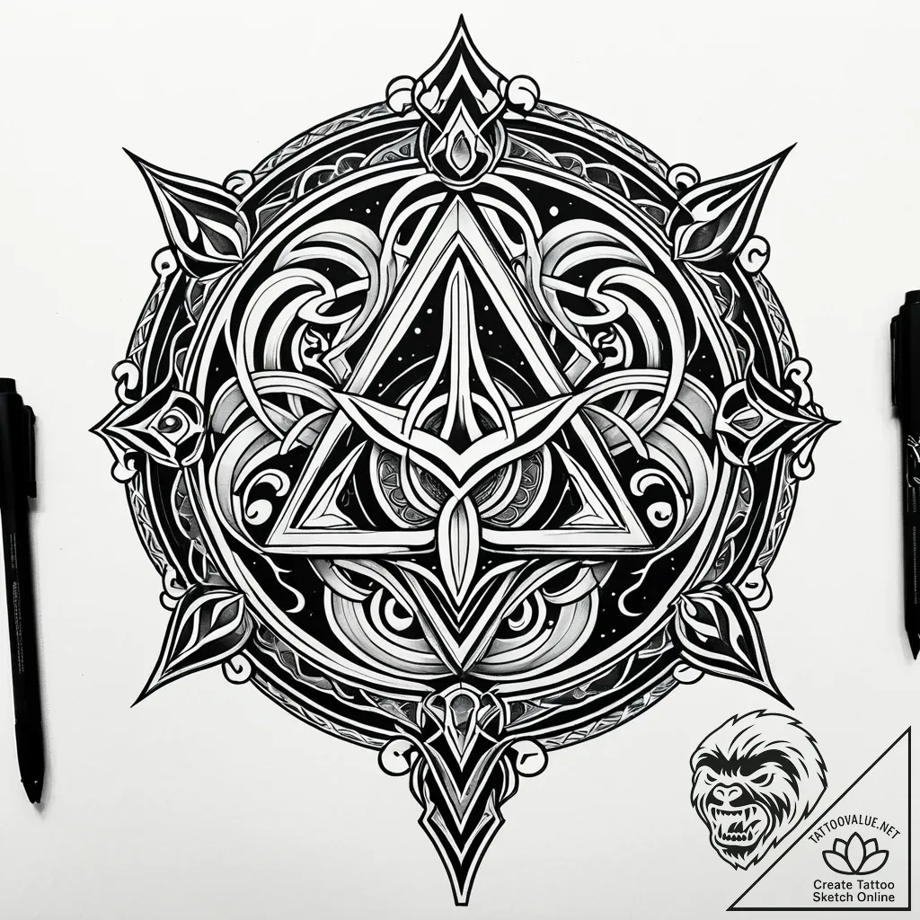 This sketch is ideal for individuals who resonate with strength, mystery, and a connection to ancient lore, particularly those with a bold and assertive personality. Its substantial detail and impactful design would look magnificent as a statement piece on the forearm, allowing its complexity to be appreciated, or as a commanding focal point on the upper back between the shoulder blades, symbolizing protection and inner power.