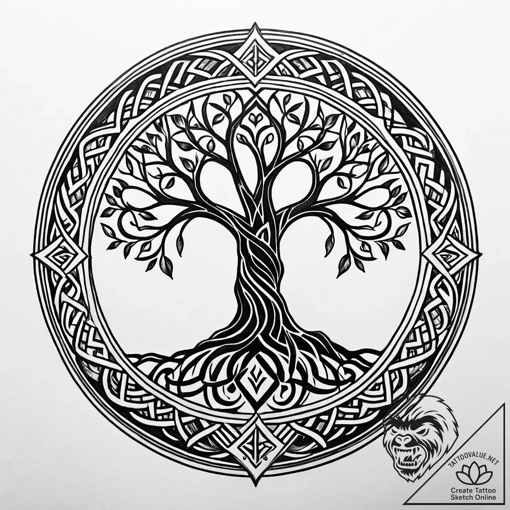 This sketch is ideal for individuals drawn to ancient symbolism, seeking to express their connection to nature, heritage, or personal growth. It would look impressive on the back between the shoulder blades, allowing the circular design to embrace the spine, or as a striking chest piece, symbolizing a grounded and central life force.
