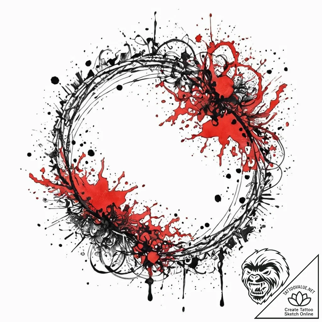 Your request “a beautiful, ornate map, with a clear, marked path from "start" to "finish", ink illustration for tattoo, black and red ink, red accent, dramatic two-tone, on a clean white paper, isolated, dotwork shading, stippling texture, pointillism effect for tattoo, watercolor tattoo style, artistic splashes, vibrant blended colors, no outlines, abstract watercolor” has been brought to life in a new sketch at tattoovalue.net.