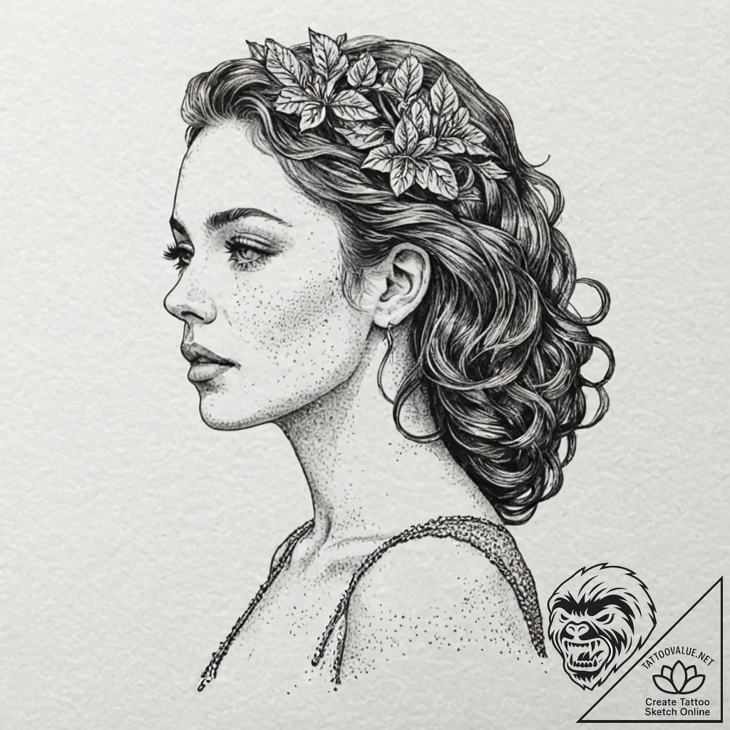 This stylish design inspired by “a beautiful woman whose body is a living, breathing jungle, tattoo line art, dotwork shading, stippling texture, pointillism effect for tattoo, sepia tone sketch, vintage paper look, on a clean white paper, isolated, minimalist tattoo design, simple clean lines, tiny tattoo, subtle design” was prepared especially for you at tattoovalue.net.