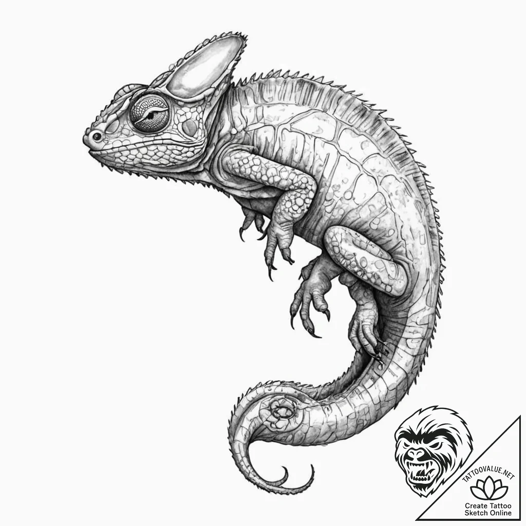 A chameleon, its skin a beautiful, shifting p… – tattoo sketch (№1752101423_0, 09.07.2025 22:50) — tattoovalue.net