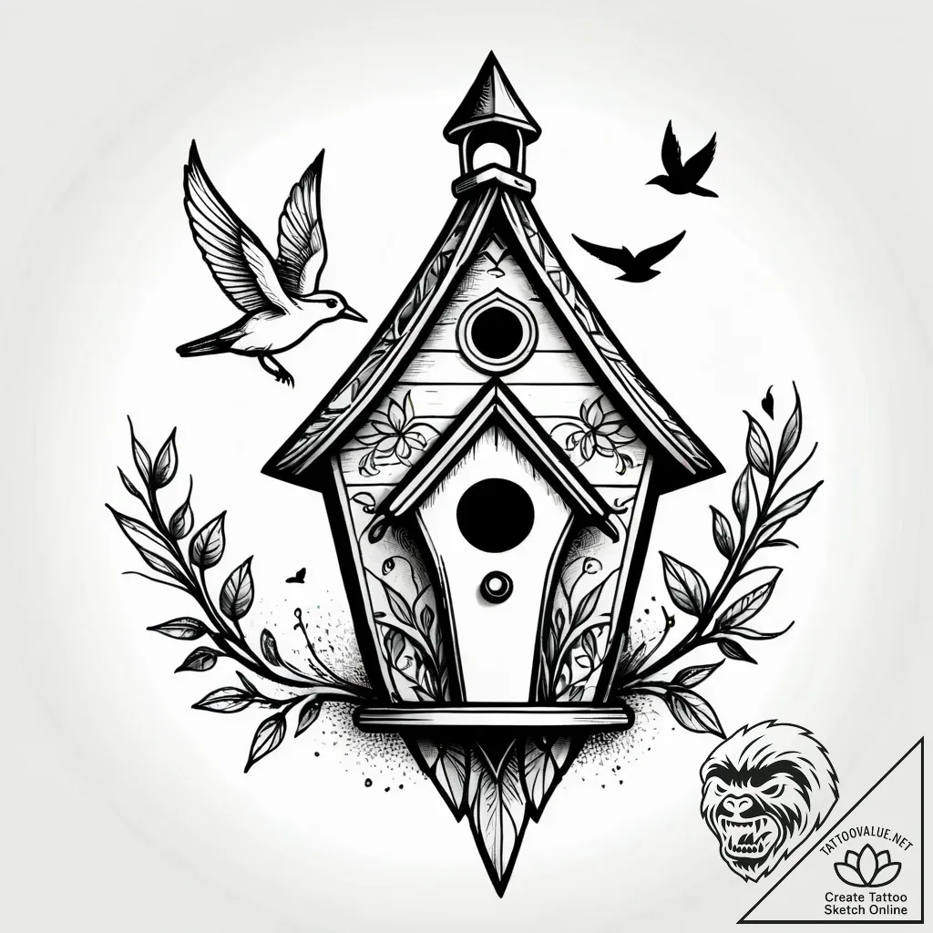 A charming birdhouse with small birds, cozy a… – style Jagger Old – tattoo sketch (27.12.2025 23:36)