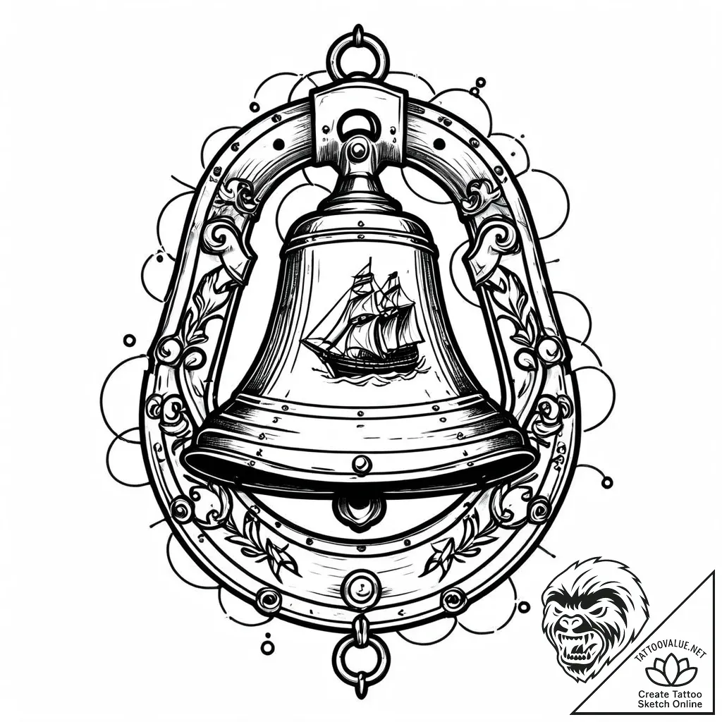 A classic bell from a ship, nautical,, tattoo… – style Jaeger Mini – tattoo sketch (10.12.2025 00:37)
