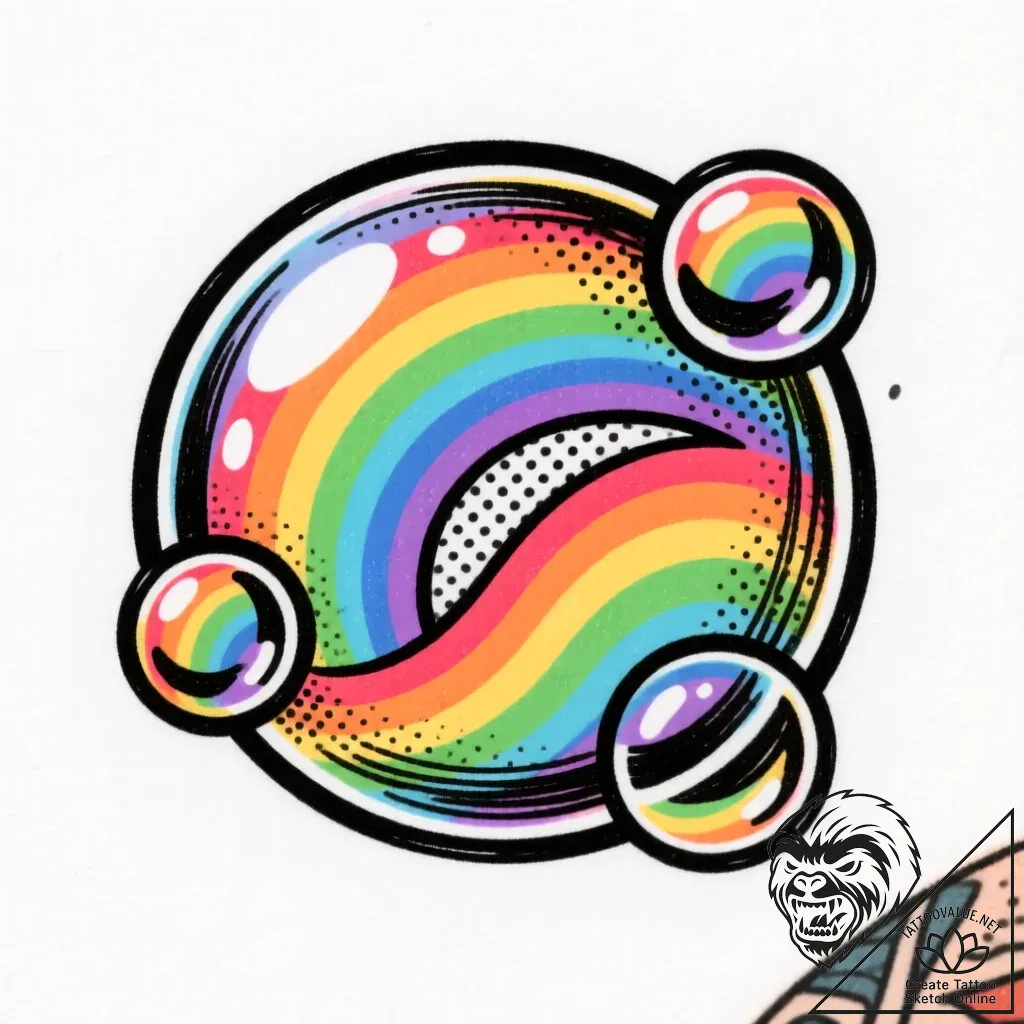 Soap bubbles symbolize transience, lightness, and the fleeting nature of moments, often representing joy, innocence, and pure imagination. The rainbow colors amplify this, symbolizing hope, diversity, and positive energy. This tattoo can embody a free-spirited personality, an appreciation for simple pleasures, or a desire to embrace optimism and change.