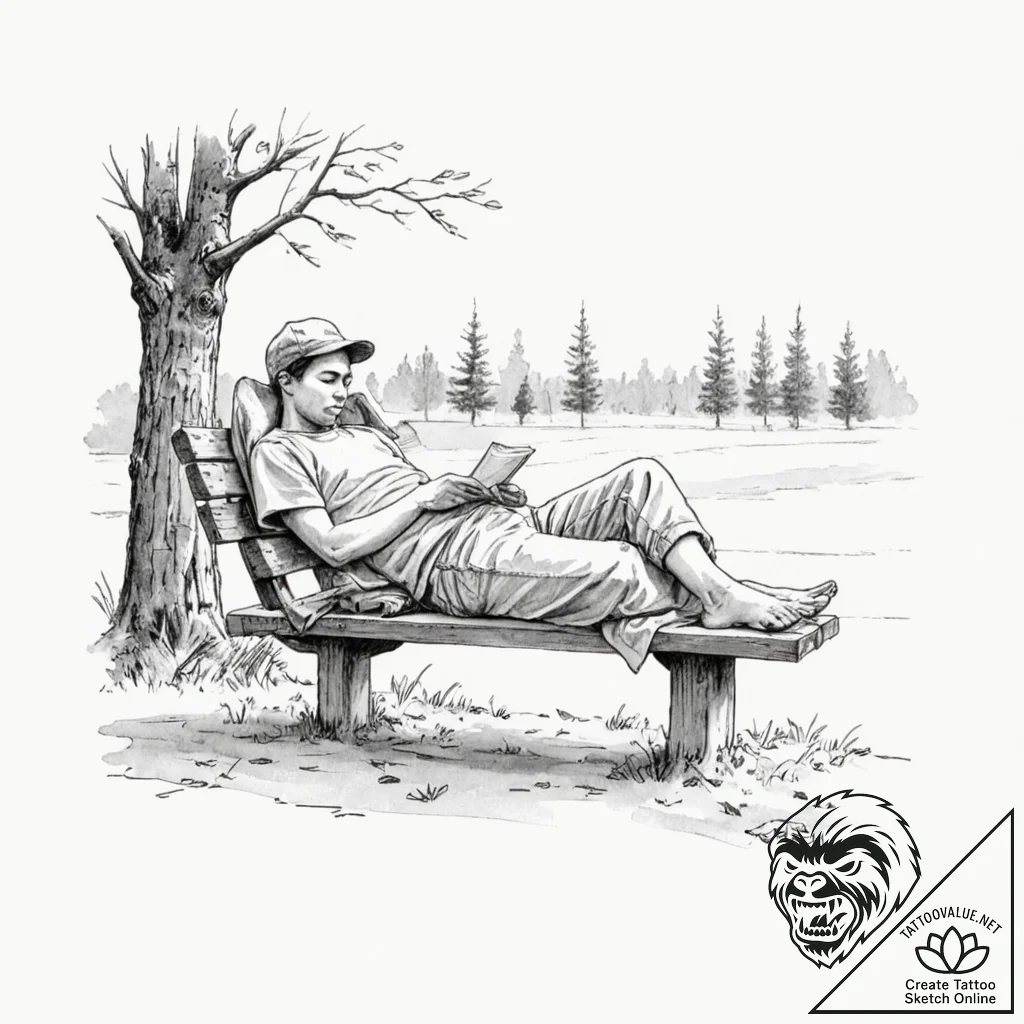 This unusual design inspired by “a drawing of a person sleeping on a park bench” was created especially for you at tattoovalue.net.
