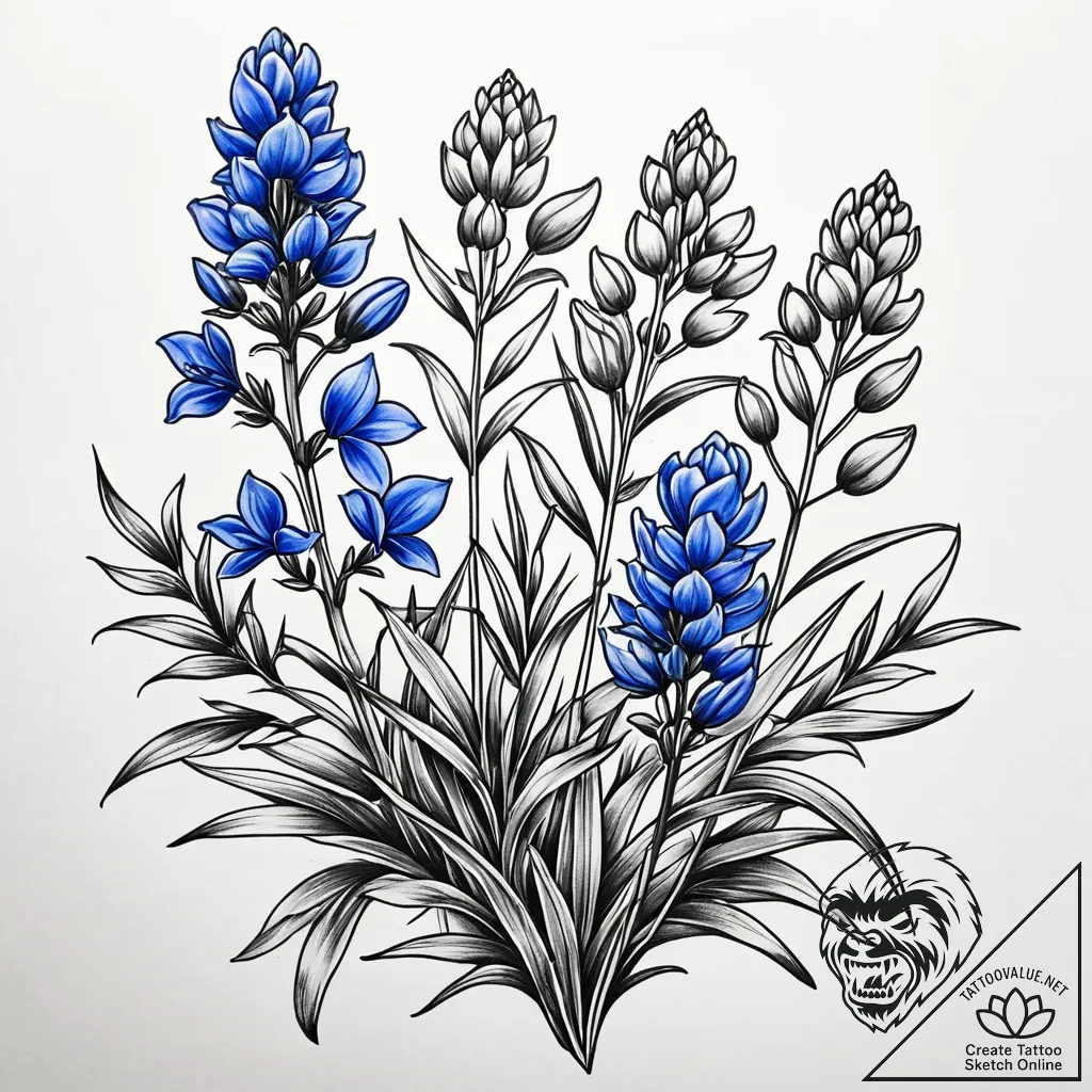 This sketch is ideal for individuals who appreciate nature, have a strong connection to Texas, or seek a tattoo that embodies gentle beauty and personal growth. It would look striking on the forearm, allowing the intricate details to be admired, or as a more expansive piece on the calf, echoing the grounded nature of the flower.