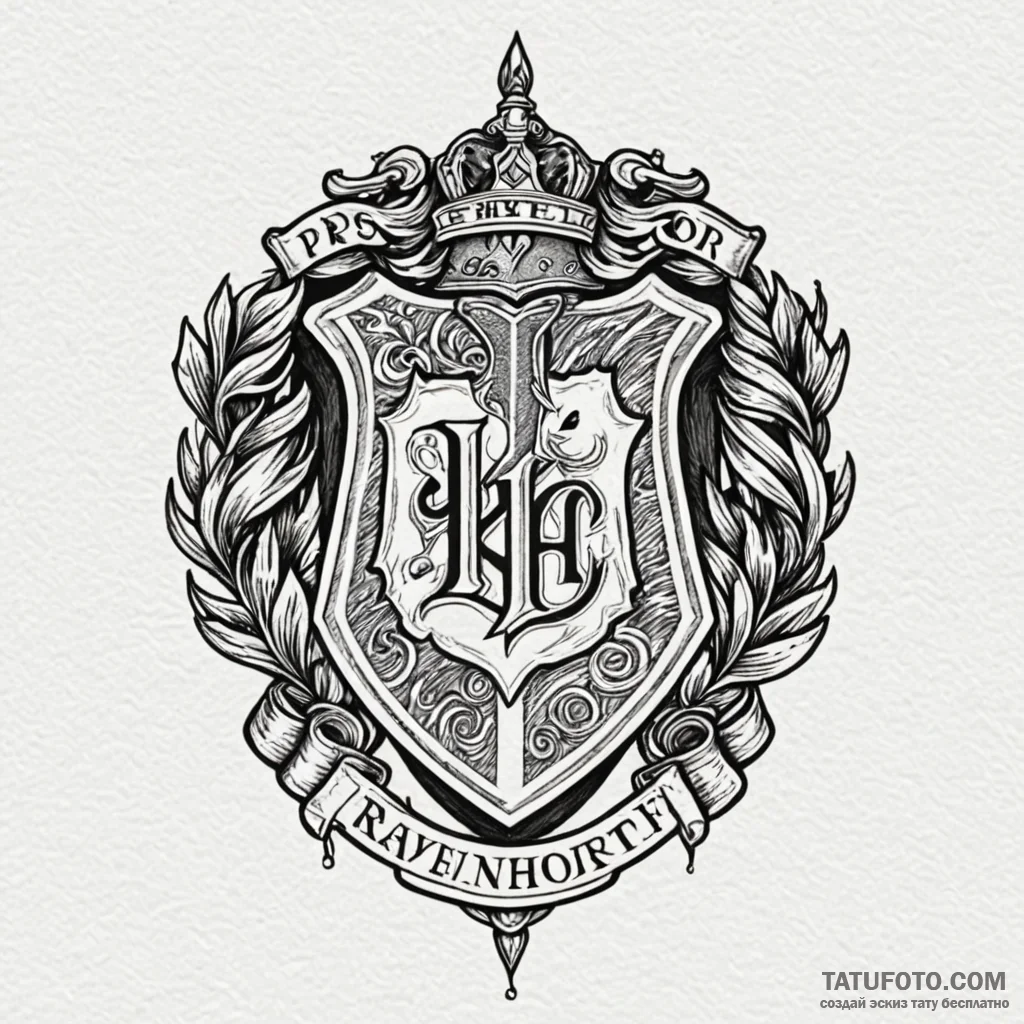 This stylish design inspired by “a flash sheet of the four hogwarts house crests: gryffindor, slytherin, hufflepuff, ravenclaw., tattoo drawing outline, stylized interpretation, graphic style, artistic stylization, detailed cross-hatching shading, pen and ink hatching, studio lighting presentation, professional sketch display, watercolor tattoo style, artistic splashes, vibrant blended colors, no outlines, abstract watercolor, muted color palette, desaturated colors, vintage tattoo feel” was prepared especially for you at tattoovalue.net.