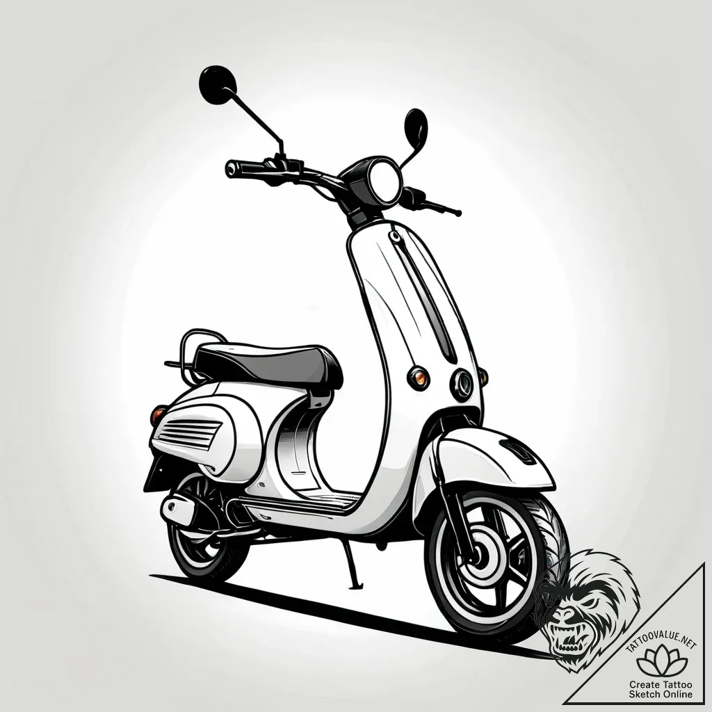 The electric scooter symbolizes modern mobility, independence, and a connection to the city's pulse, while the vintage aesthetic hints at nostalgia and enduring style. This tattoo can represent a free spirit, a love for exploration, or a desire to blend contemporary living with timeless charm.