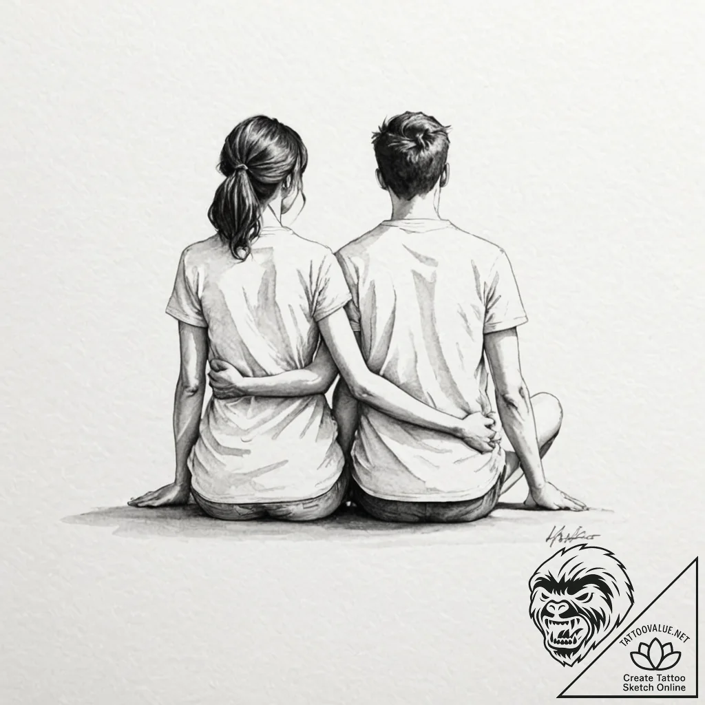 Presenting a one-of-a-kind tattoo sketch, prepared based on your request “a person, sitting back-to-back with their own shadow, but they are holding hands” at tattoovalue.net.