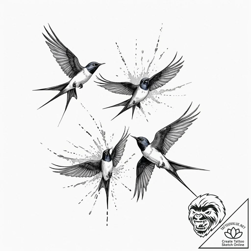 Your request “a powerful migratory flock of swallows, a harbinger of change” has been brought to life in a new sketch at tattoovalue.net.
