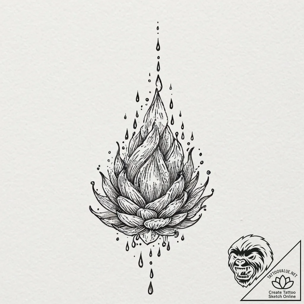 Presenting a exclusive tattoo sketch, created based on your request “a realistic drop of water, sliding down the curve of the body, concept art for tattoo, fine lines, delicate linework, single needle style, on a clean white paper, isolated, blackwork tattoo style, dark art, bold black areas, heavy black ink, muted color palette, desaturated colors, vintage tattoo feel” at tattoovalue.net.