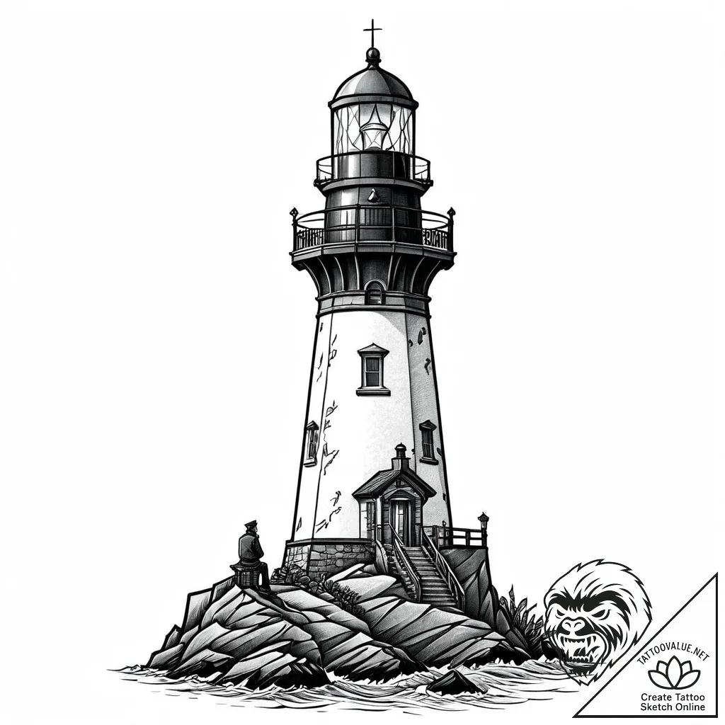 A shot of a lighthouse keeper looking out to… – style Jaeger Mini – tattoo sketch (23.12.2025 23:57)