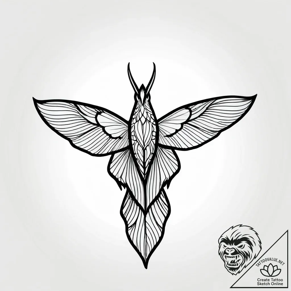 This minimalist sketch captures a moth or butterfly in mid-flight, its wings unfurling like delicate sails of fine, monochrome linework. The piece is executed in a single-needle style, using subtle greyscale tones and delicate linework to create a sense of ethereal grace and intricate detail. The composition is balanced and striking, evoking a quiet wonder.