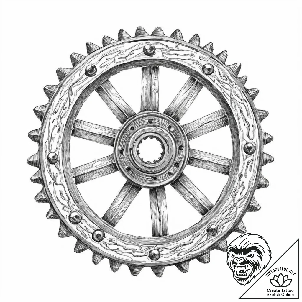 Home / A single, rusty gear from a broken machine – tattoo sketch (№1752021327_0, 09.07.2025 00:35) — tattoovalue.net