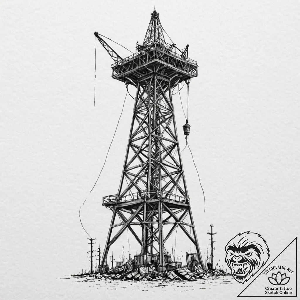 A sketch of the oil derrick on fire from ther... - tattoo sketch (№1752184683_0, 10.07.2025 21:58) — tattoovalue.net