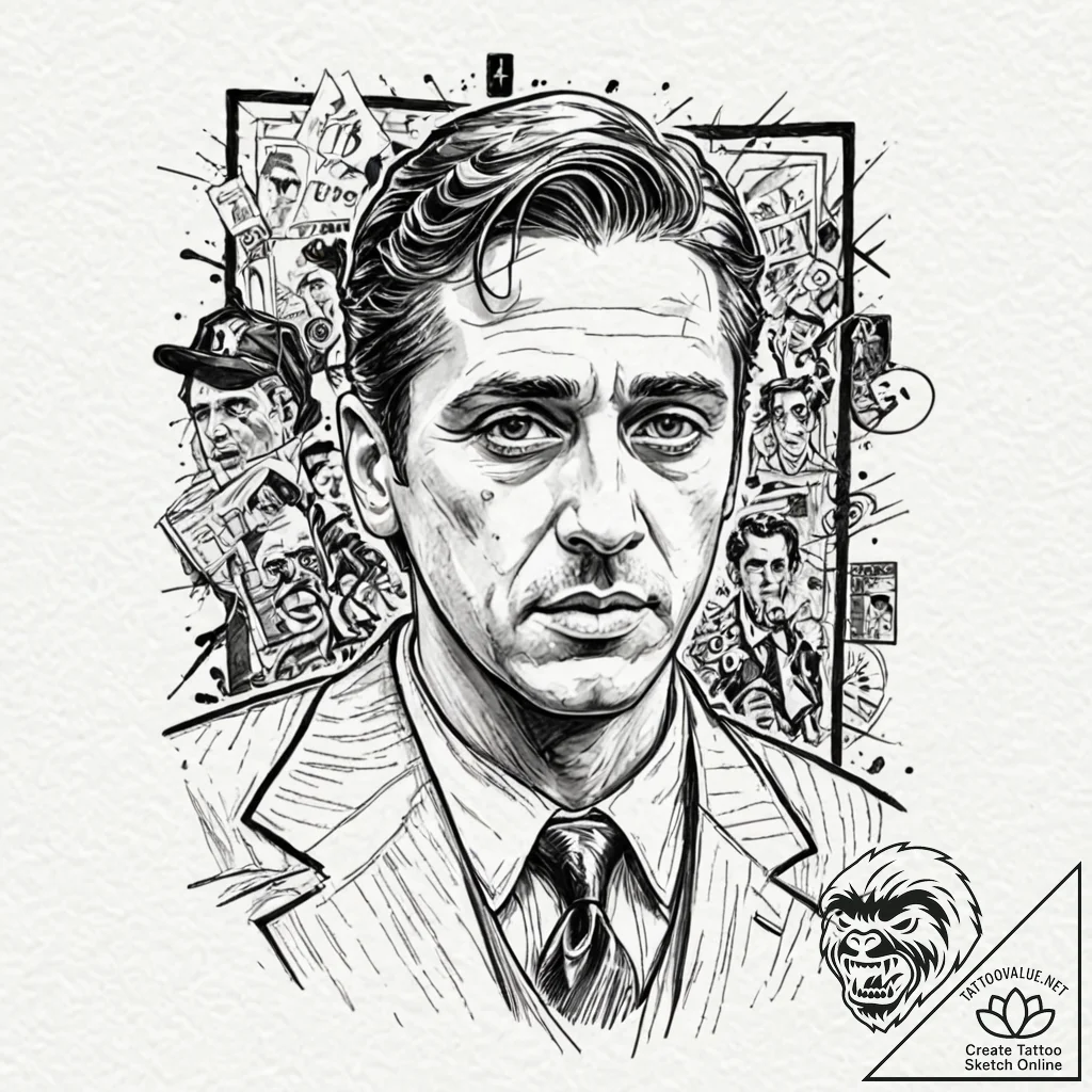 A trash polka composition of michael corleone… – tattoo sketch (№1752183676_0, 10.07.2025 21:41) — tattoovalue.net