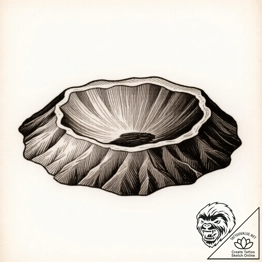 A view of a volcanic crater from the rim., co… – style Flux Inscriptions – tattoo sketch (01.01.2026 22:37)