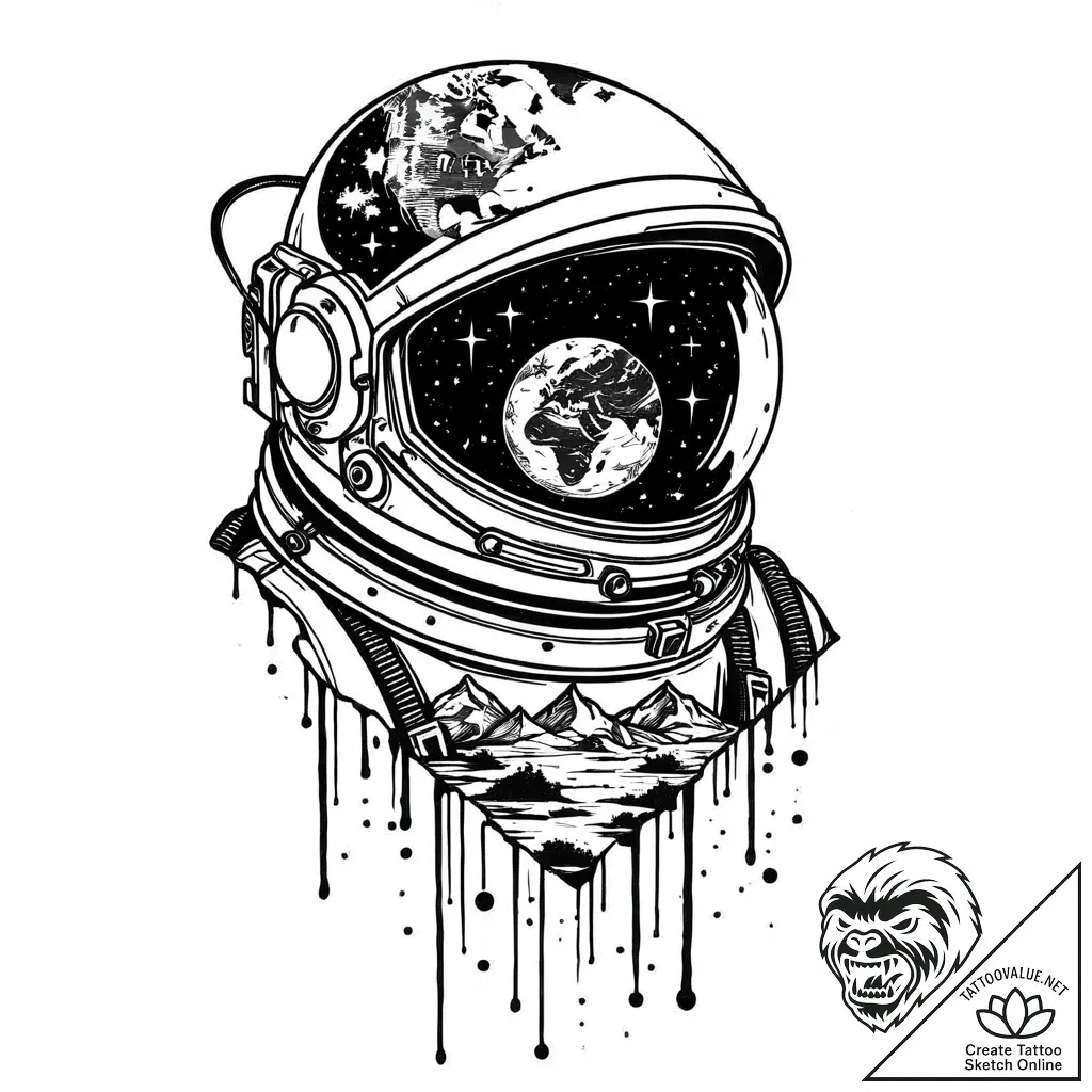 An astronaut’s helmet reflecting the earth.,… – style Jaeger Mini – tattoo sketch (18.12.2025 23:37)