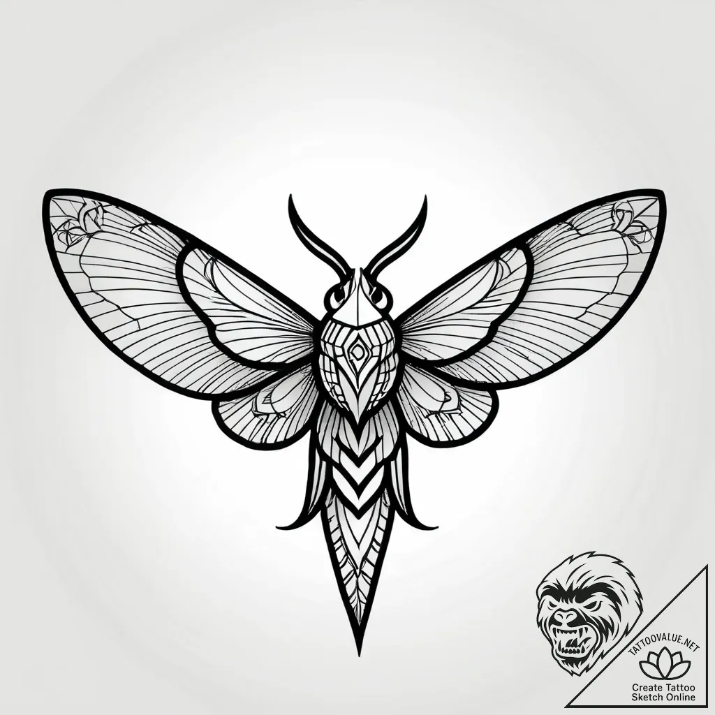 • Final Prompt for AI (EN): tattoo sketch, tattoo design, isolated tattoo sketch on pure white background, astral moth, glowing patterns, concept art, tattoo design, stylized interpretation, graphic style, artistic stylization, aesthetically pleasing, beautiful design, dotwork tattoo style, stippling art, pointillism, geometric dotwork, clean lines, crisp outlines, sharp linework, muted color palette, desaturated colors, vintage tattoo feel, isolated, on clean white paper