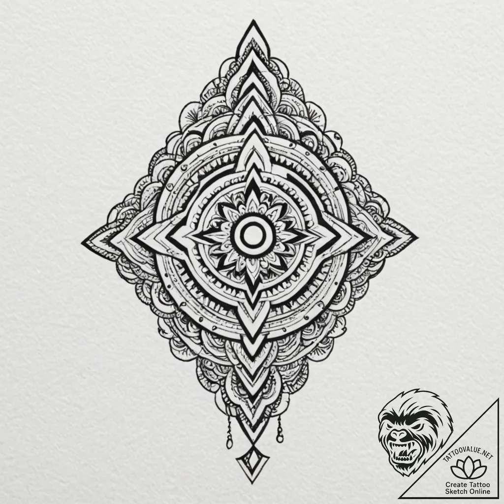 This stylish design inspired by “aztec, artistic tattoo sketch, soft whip shading, pepper shading, smooth dot shading, black outline only, pure linework, no shading, clear image, sharp focus, ornamental tattoo, decorative patterns, filigree, intricate details, flowing patterns, stylized interpretation, graphic style, artistic stylization, subtle drop shadow, object casting a light shadow” was prepared especially for you at tattoovalue.net.