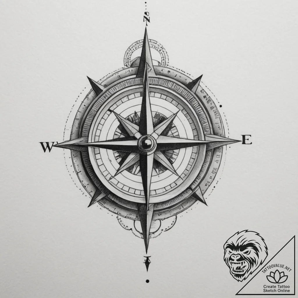 Your request “compass, artistic tattoo sketch, soft whip shading, pepper shading, smooth dot shading, vibrant colors, full color spectrum, bold bright tattoo inks, on a clean white paper, isolated, realistic black and grey tattoo, photorealistic detail, soft shading” has been rendered in a new sketch at tattoovalue.net.