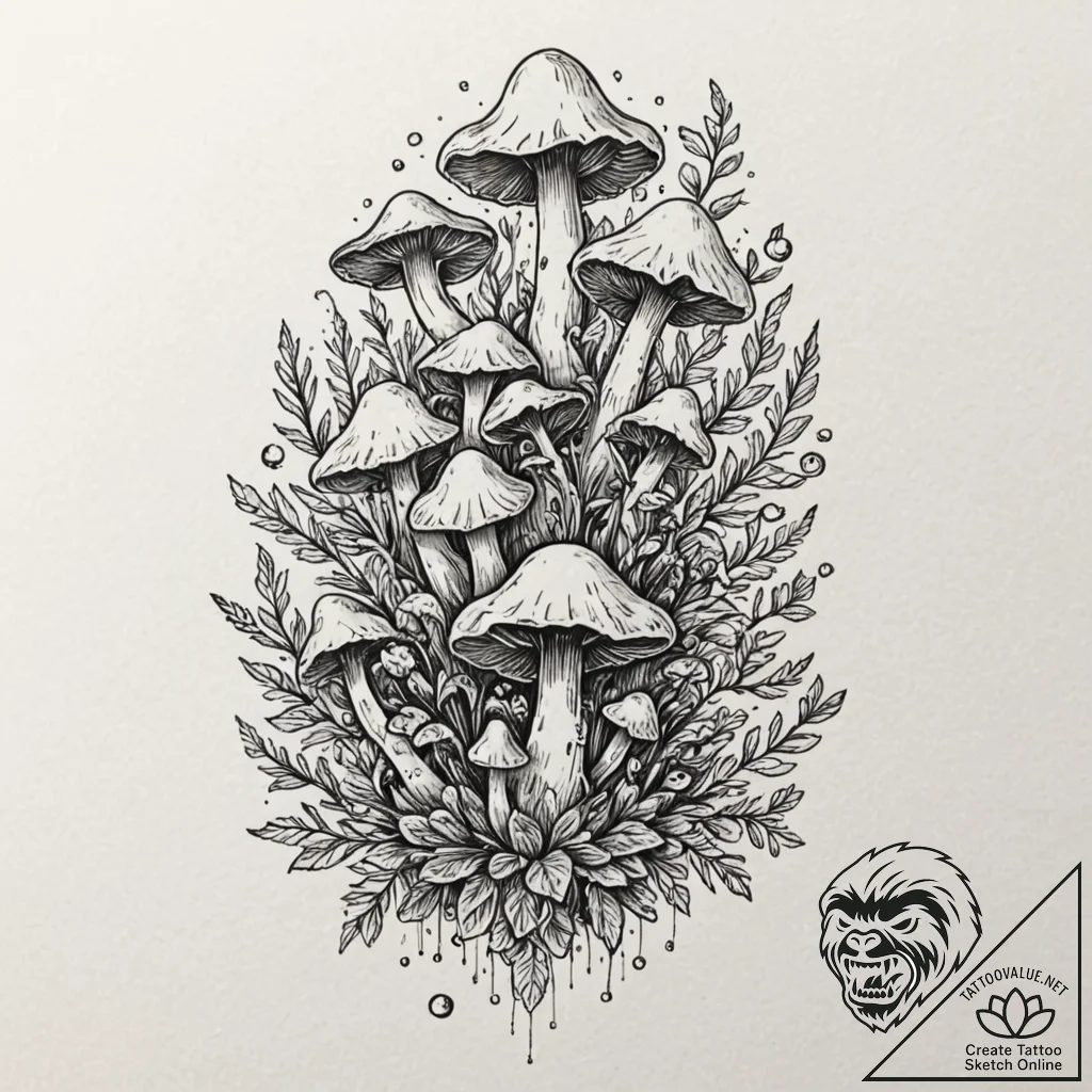 Crystal cluster with tiny, glowing mushrooms… – tattoo sketch (№1753287467_0, 23.07.2025 16:17) — tattoovalue.net
