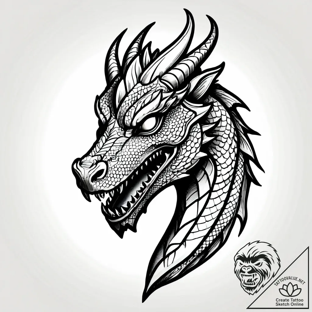 Dragon mask forged from iron, ink illustratio… – style Jagger Old – tattoo sketch (18.12.2025 15:57)