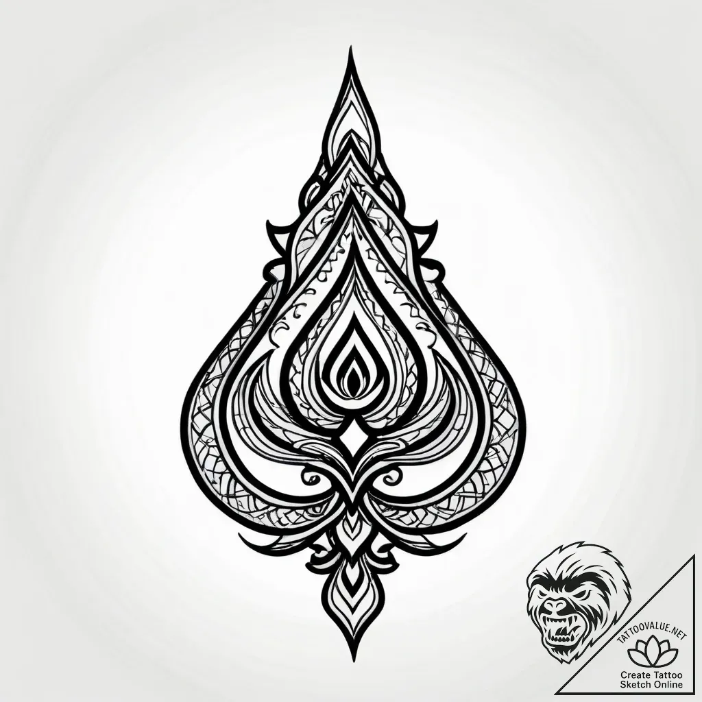 This blackwork tattoo sketch unfolds like a mystical flame, its intricate linework and bold black areas creating a sense of depth and power. The design, reminiscent of ancient mandalas and tribal patt