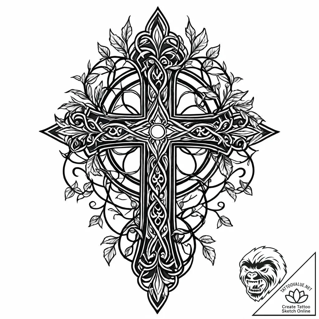 The cross itself is a potent symbol of faith, sacrifice, and eternal life, while the iron vines represent strength, resilience, and enduring growth, even in harsh conditions. This tattoo can signify a powerful spiritual connection, a testament to overcoming adversity, or a deep-seated inner strength and connection to the natural world.