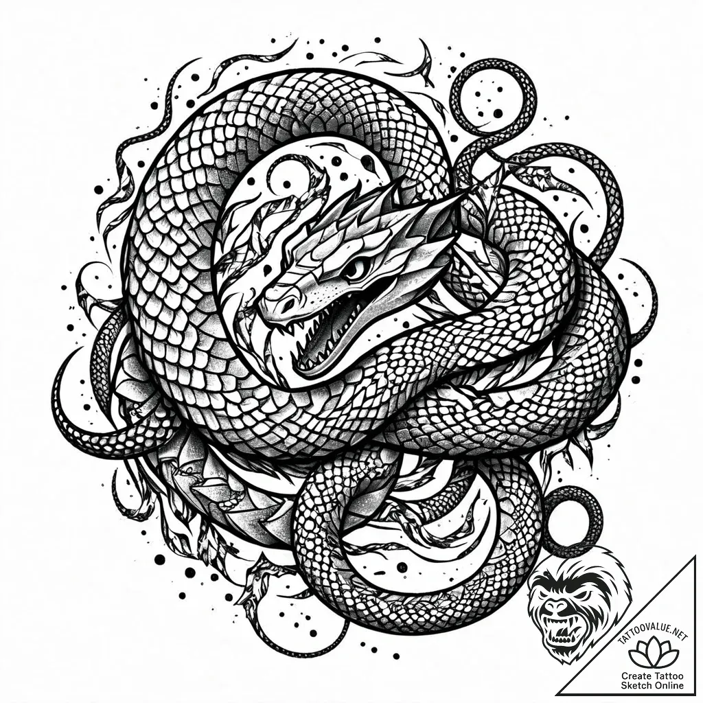 This sketch is ideal for individuals who appreciate intricate artistry and possess a contemplative, introspective nature. The design’s complexity and scale make it best suited for larger placements; it would look impressive wrapping around the upper arm, showcasing the serpent’s coiled form, or flowing along the spine, emphasizing its length and power. Alternatively, the design would be striking as a central piece on the chest, symbolizing a core strength and personal transformation.