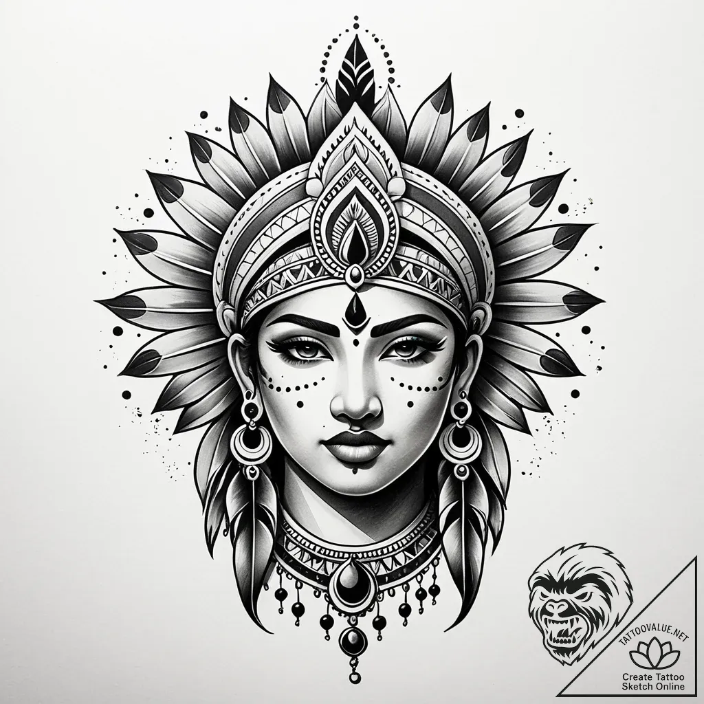 This design embodies feminine strength, wisdom, and a connection to ancestral heritage, reminiscent of powerful Indian deities or revered matriarchs. It speaks to the wearer's inner resilience, their graceful demeanor, and a profound respect for cultural roots and spiritual guidance.