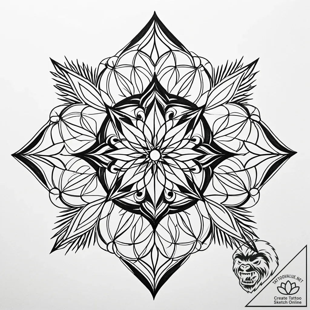 Mandals are ancient symbols of the universe and spiritual journey, representing wholeness and interconnectedness. This design, with its sharp, almost thorny elements, speaks to the resilience found in beauty, a testament to overcoming adversity and embracing transformation.