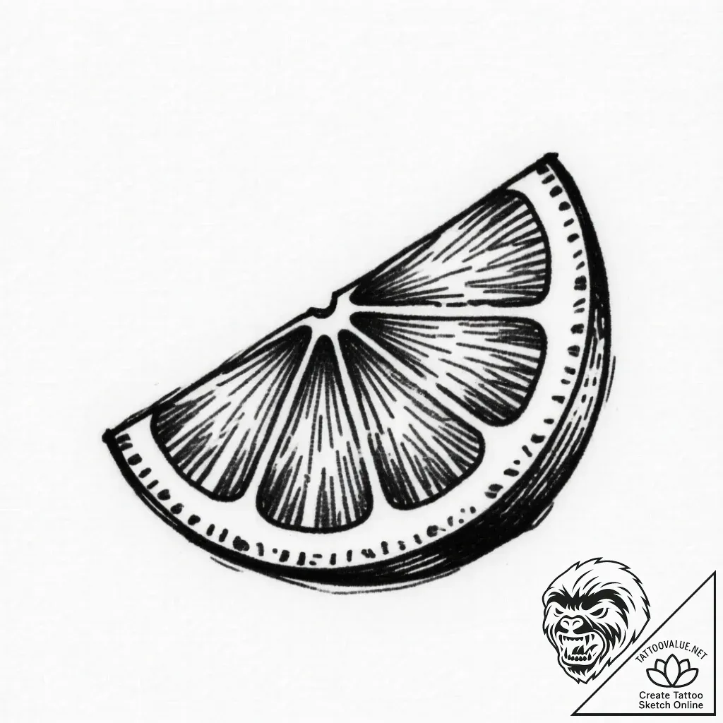 - Original User Request (RU): lemon slice, simple and graphic, tattoo drawing outline, moderately detailed, balanced complexity, clear subject definition, clear image, sharp focus, clean lines, crisp outlines, sharp linework, black and white sketch, monochrome, greyscale tones, on a clean white paper, isolated, sketch tattoo style, hand-drawn effect, rough lines, unfinished artistic look, cross-hatching