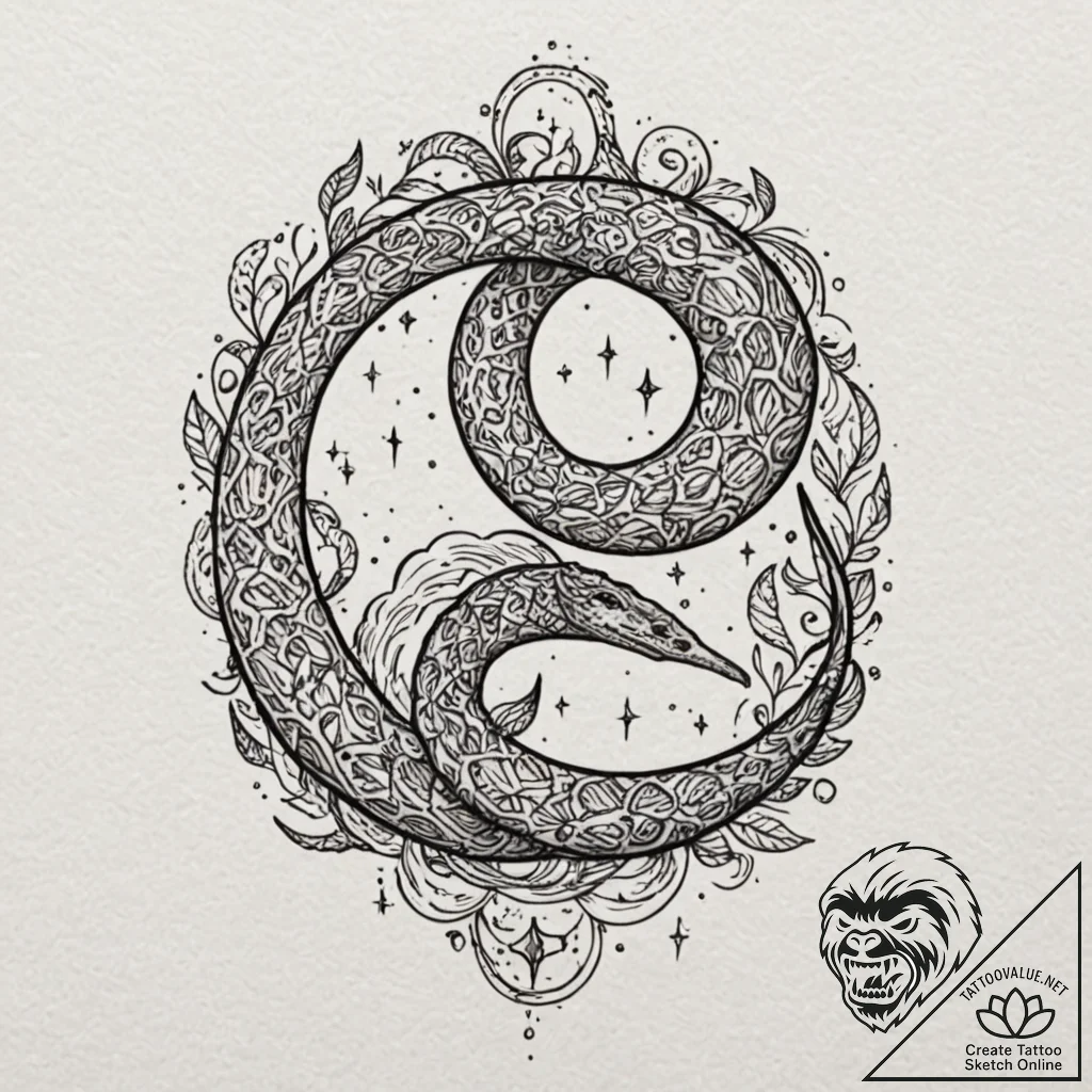 Moonlight serpent weaving through stars, tatt… – tattoo sketch (№1753287554_0, 23.07.2025 16:19) — tattoovalue.net