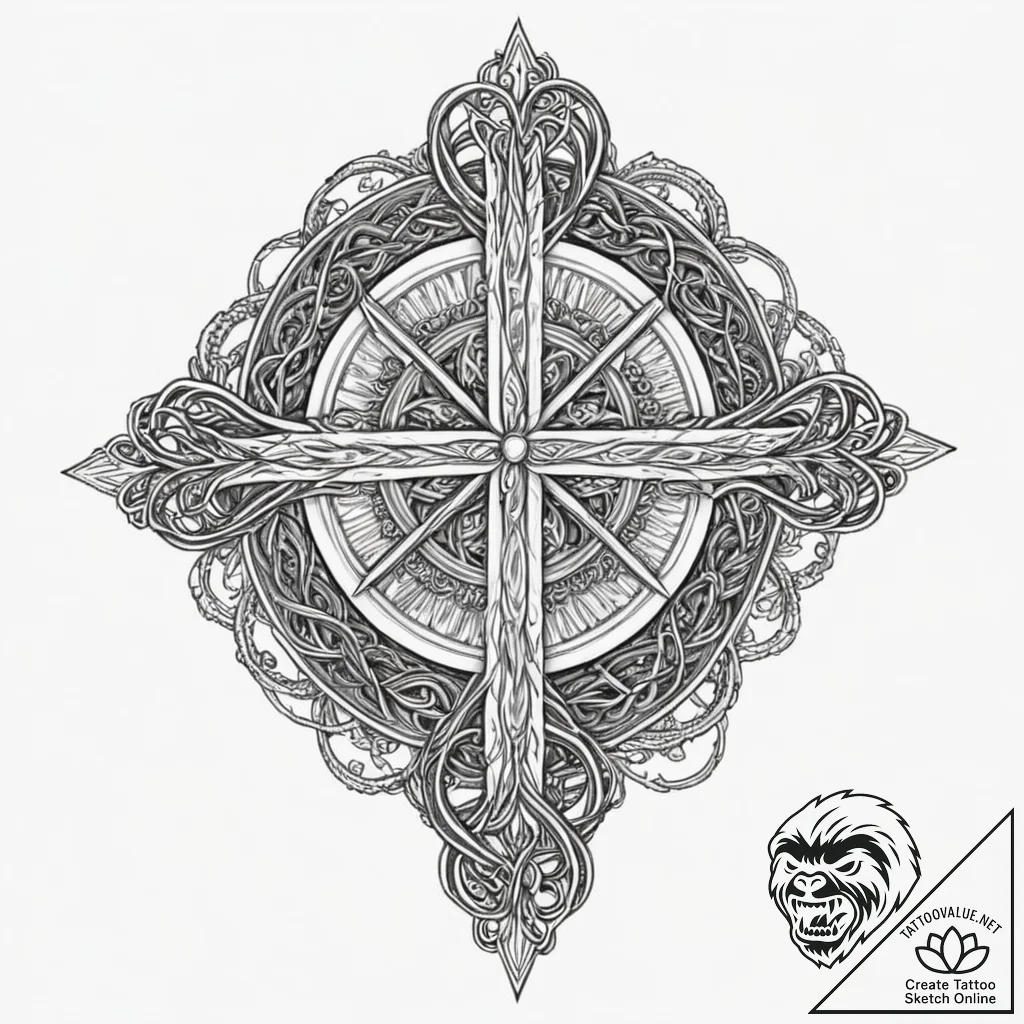 Your request “oracleРІР‚в„ўs staff entwined with roots, tattoo sketch design, detailed cross-hatching shading, pen and ink hatching, unique design, original concept, on a clean white paper, isolated, black and grey tattoo shading, smooth gradients, neo traditional tattoo, illustrative, art nouveau influence, detailed, rich colors, highly detailed, intricate patterns, complex elements, sharp details” has been rendered in a new sketch at tattoovalue.net.