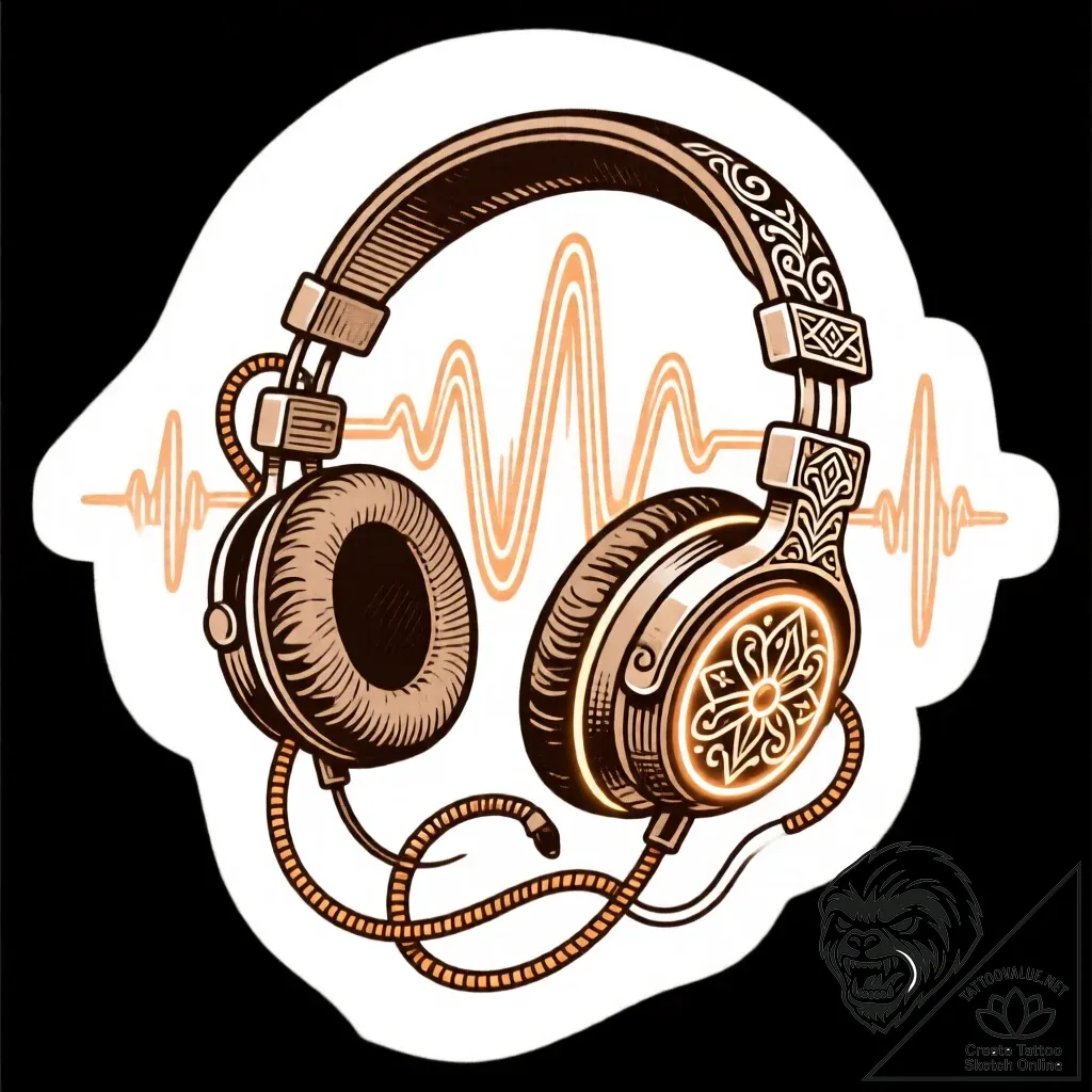 This design symbolizes a deep connection to music, rhythm, and the creative flow of sound. The intricate patterns and glowing elements represent the complex yet beautiful nature of audio, while the headphones signify immersion, passion, and the power of sonic expression. It's a statement of individuality for those who live and breathe music, highlighting their artistic spirit and vibrant personality.