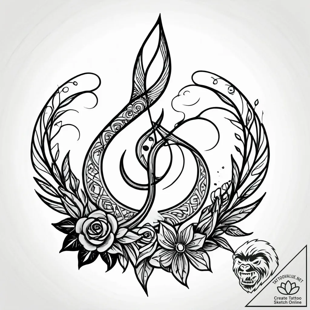 This sketch is ideal for individuals who are deeply connected to music, art, or any form of creative expression. Its elegant and intricate design would be a beautiful statement piece for those who appreciate beauty and have a romantic or artistic soul. It would look particularly stunning on the forearm or calf, allowing the flowing lines and detailed elements to be admired, or on the back between the shoulder blades, creating a captivating focal point.