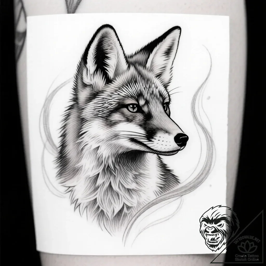 - Original User Request (RU): tat tattoo sketch, fox with swirling abstract background blending into fur, dreamy artistic wildlife tattoo, artistic tattoo sketch, on a clean white paper, isolated, detailed cross-hatching shading, pen and ink hatching, black and grey tattoo shading, smooth gradients, minimalist tattoo design, simple clean lines, tiny tattoo, subtle design