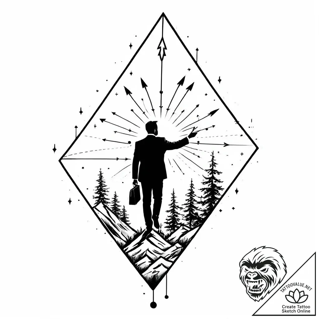 This sketch is ideal for individuals who embody ambition, leadership qualities, and a drive for continuous growth and achievement. It would look impactful on the forearm, allowing the ascending arrows to visually guide the eye, or as a statement piece on the back between the shoulder blades, signifying a forward-looking perspective.