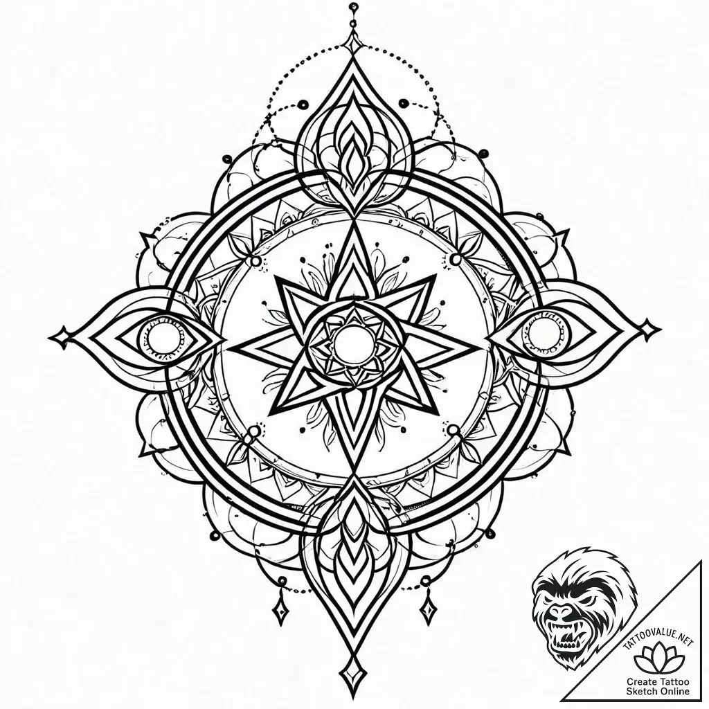 This design embodies a quest for inner truth and universal connection, symbolized by the central star and watchful eyes. It speaks to wisdom, intuition, and the pursuit of spiritual enlightenment, drawing parallels to the cyclical nature of mandalas and the profound symbolism found in Tarot. A tattoo of this nature can powerfully represent an individual's dedication to self-discovery and their embrace of the mystical.