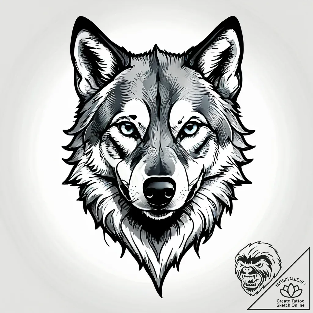 This striking wolf sketch is a masterclass in blackwork, featuring bold, heavy black ink that defines its fierce gaze and the wildness of its fur, contrasted with smooth, gradient shading that brings a sense of depth and raw power. The rough, sketchy lines and an artistic, unfinished look lend it an untamed energy, like a primal spirit captured on paper.