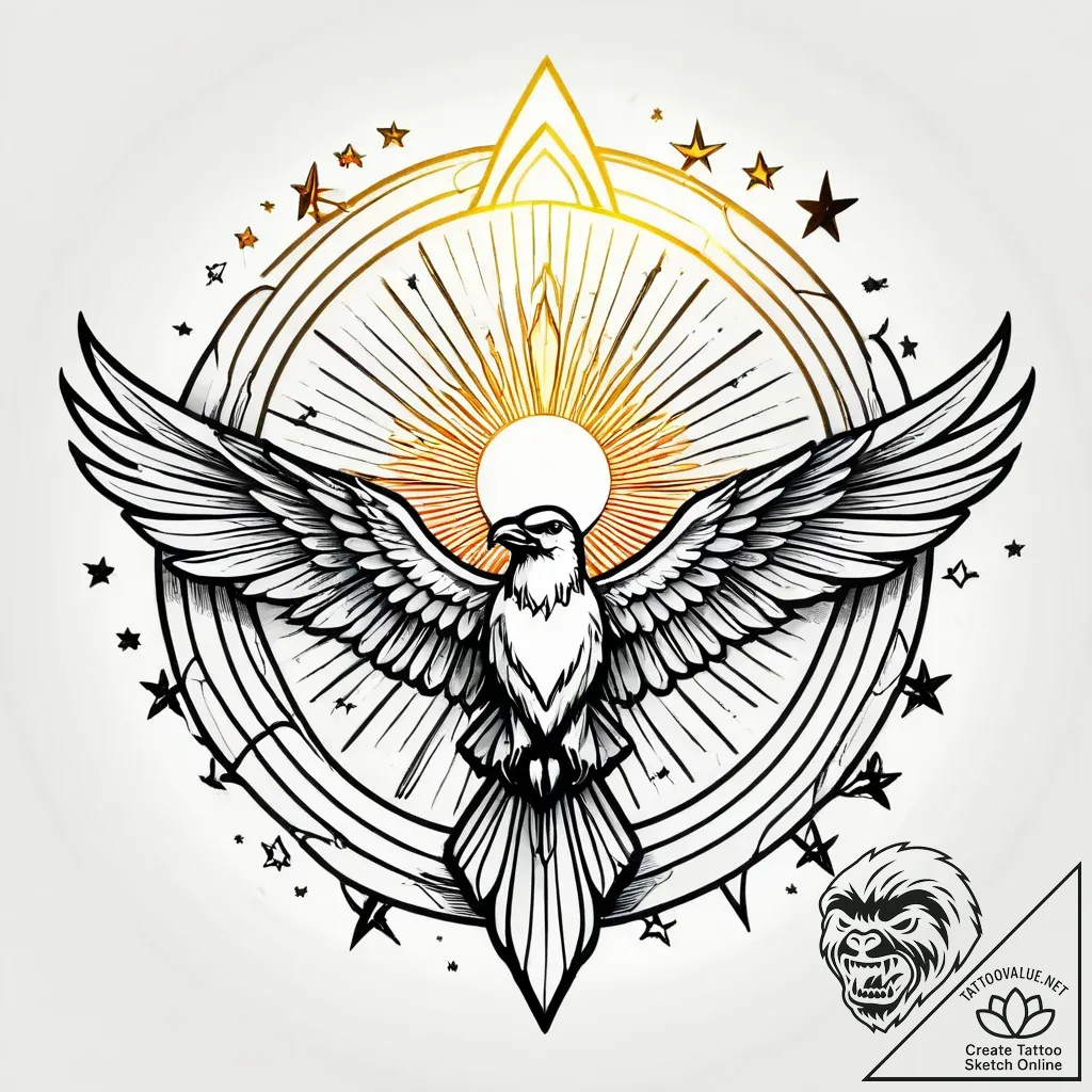 The eagle symbolizes strength, vision, and freedom, while the breaking sun represents hope and new beginnings. This design embodies the spirit of overcoming adversity and soaring towards one's aspirations, making it a perfect representation of resilience and the pursuit of liberty.