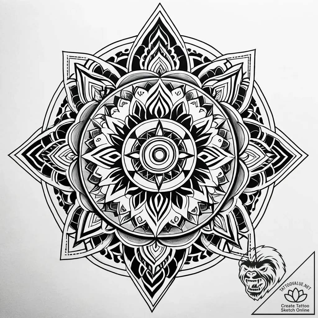 This detailed, symmetrical sketch is perfect for individuals who resonate with introspection, spirituality, and a deep appreciation for art and pattern. It would be stunning as a statement piece on the back between the shoulder blades, allowing the intricate details to command attention, or as a bold, eye-catching design on the forearm or calf.